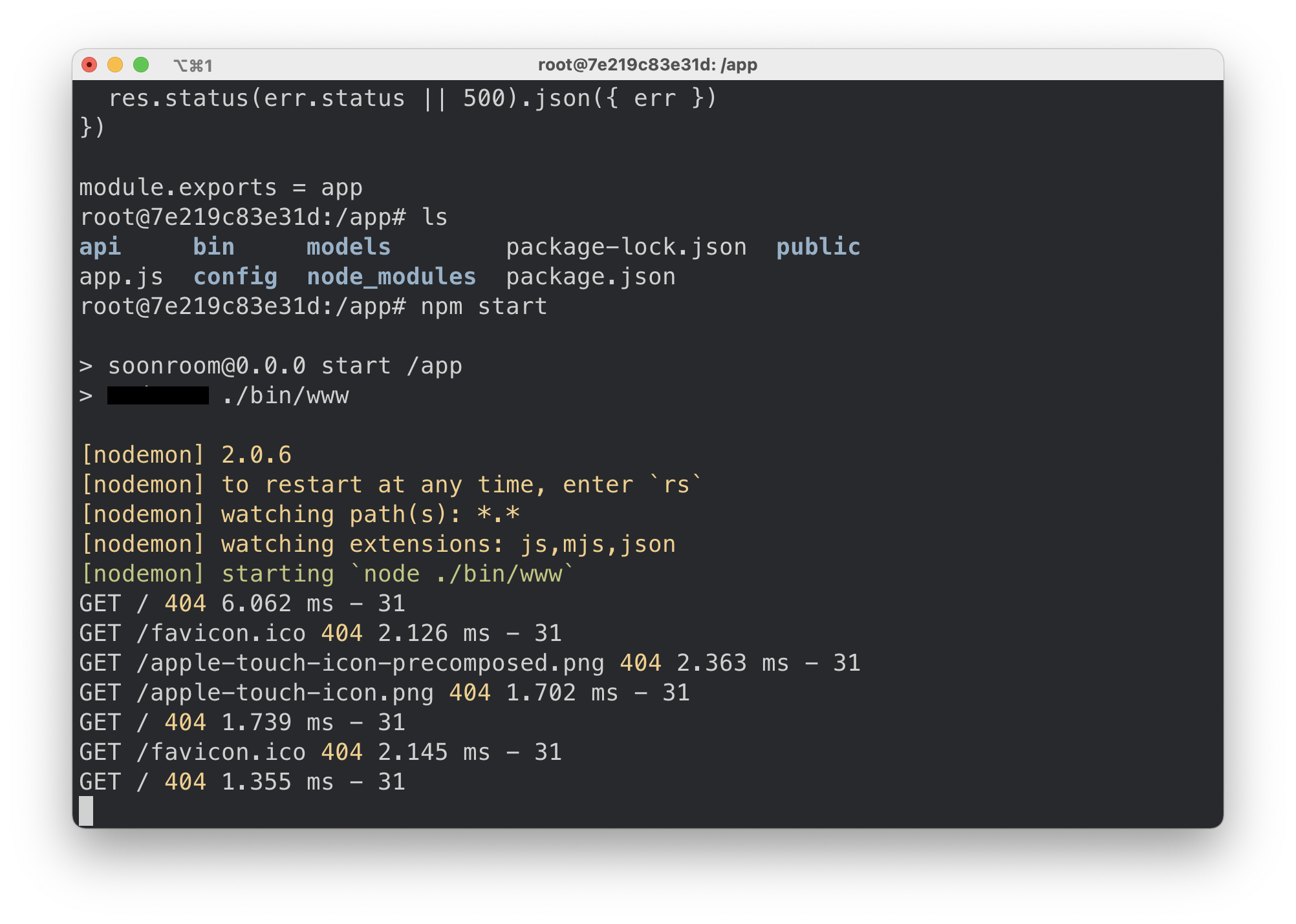 아래는 출력물 예시이다. 내가 임의로 만든 nodejs 개발용 ubuntu 서버 이미지가 실행되고 있는 모습이다.