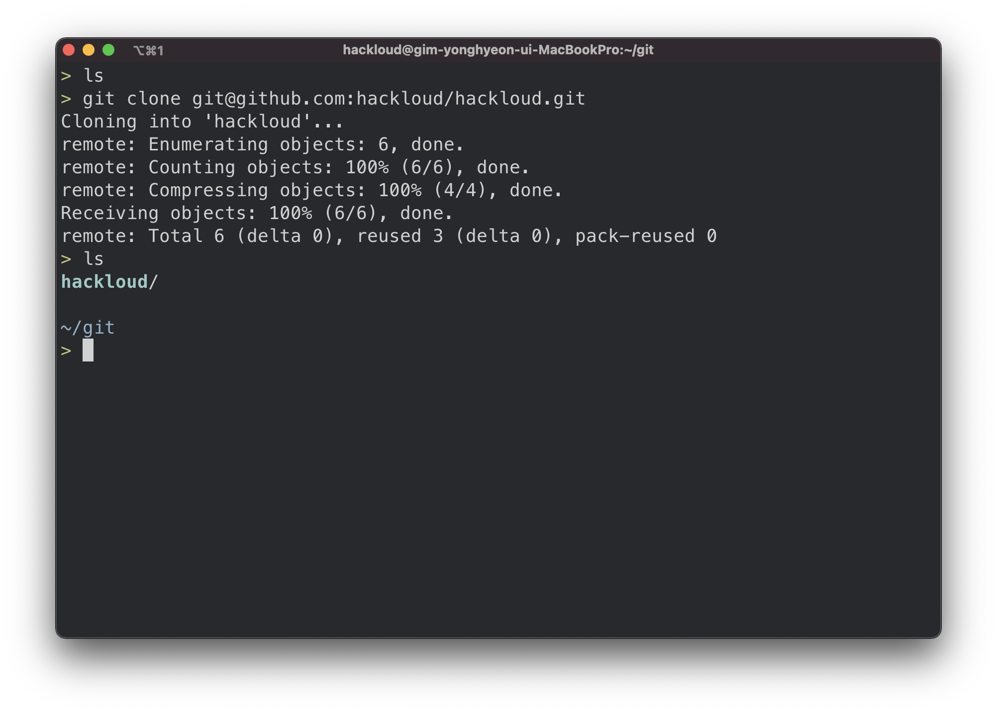 하지만 이렇게 할 경우 레포지토리 이름으로 새로운 디렉토리가 생성된다.